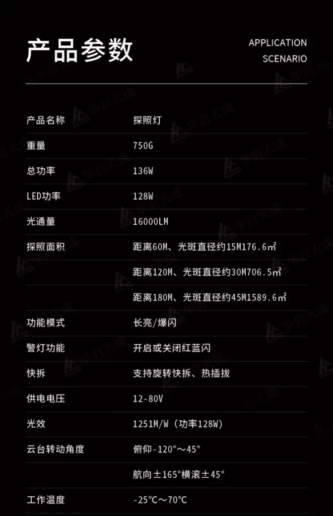 Searchlight drone mount with one-click quick detach for fire rescue and disaster relief lighting and warning; supports DJI.