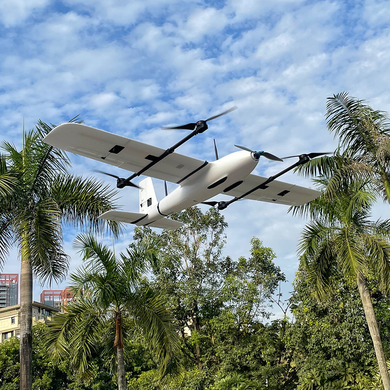 GL100 is an affordable and reliable VTOL(vertical take-off and landing) fixed-wing plane for mapping, aerial survey, and surveillance applications. It comes with four lift motors and one fixed-wing motor, which will allow the VTOL drone to ascend like a helicopter. For the mapping or security mission, the fixed-wing motor will make the drone fly like a plane.